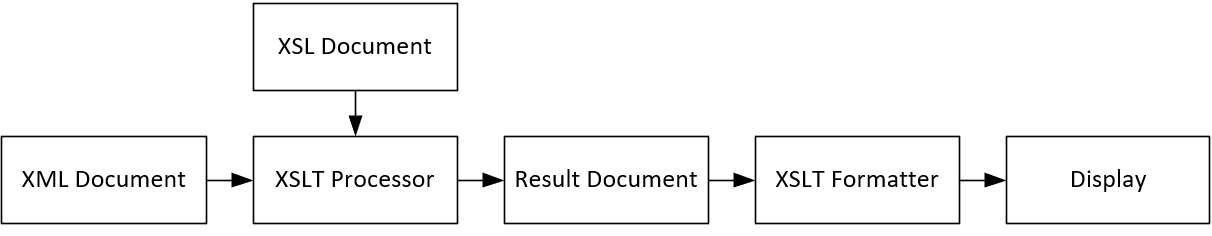 The XSLT stylesheet is written in XML format. The XSLT processor takes the XSLT stylesheet and applies transformation rules on the target XML document and then generates a formatted document in XML, HTML or text format. This formatted document is then used by the XSLT formatter to generate the actual output that is to be displayed to the end user.